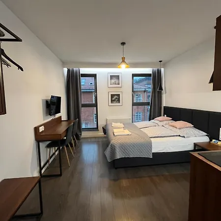Browar Gdanski Modern Apartments, di 20 m^2,si trova nel quartiere Wrzeszcz di Danzica e offre agli ospiti Wi-Fi e un parcheggio privato nella struttura.